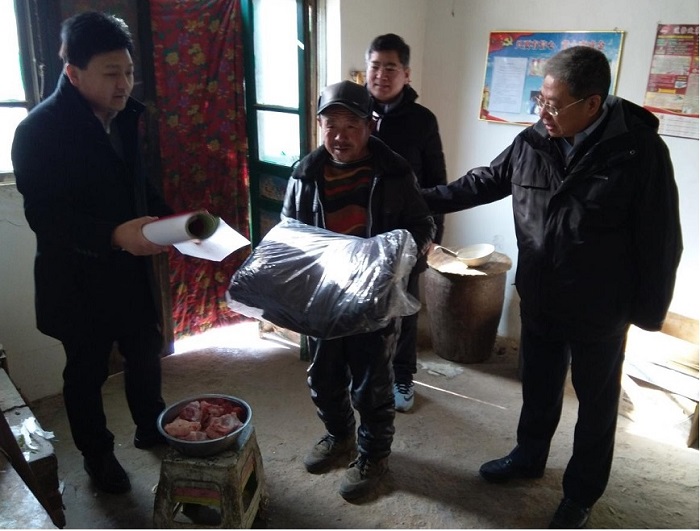 黨員志愿者帶著米面油、棉被、棉服、爐子等困難群眾最需要的生活用品以及集團(tuán)黨委的新春祝福來到貧困戶家中,每到一戶,與貧困戶拉家常,詳細(xì)了解了今年的生活、生產(chǎn)和家庭情況,張貼春聯(lián),聆聽他們一年來為脫貧致富所做的各項努力,叮囑他們遇到困難及時與幫扶人、工作隊聯(lián)系,并衷心地祝福他們春節(jié)快樂,身體健康,平安幸福。村民表示在駐村隊的幫扶下,日子會越過越好,感謝駐村工作隊、感謝國富集團(tuán)、感謝黨,沒有你們,就沒有我們今天的好日子。